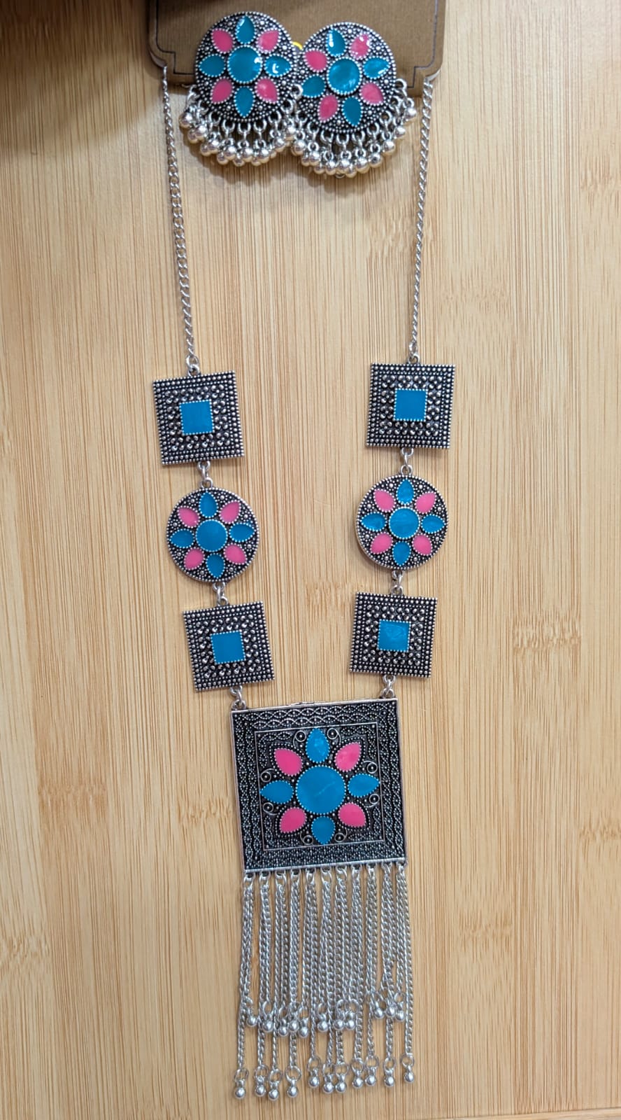 The oxidized silver gives each piece a unique antique look, making it perfect for those who appreciate ethnic elegance with a modern touch. Whether paired with traditional attire or styled with contemporary outfits, this jewelry adds a distinctive charm and statement to your look.