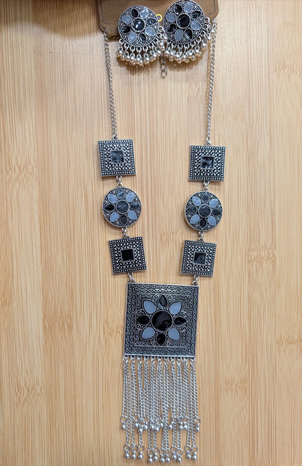 The oxidized silver gives each piece a unique antique look, making it perfect for those who appreciate ethnic elegance with a modern touch. Whether paired with traditional attire or styled with contemporary outfits, this jewelry adds a distinctive charm and statement to your look.