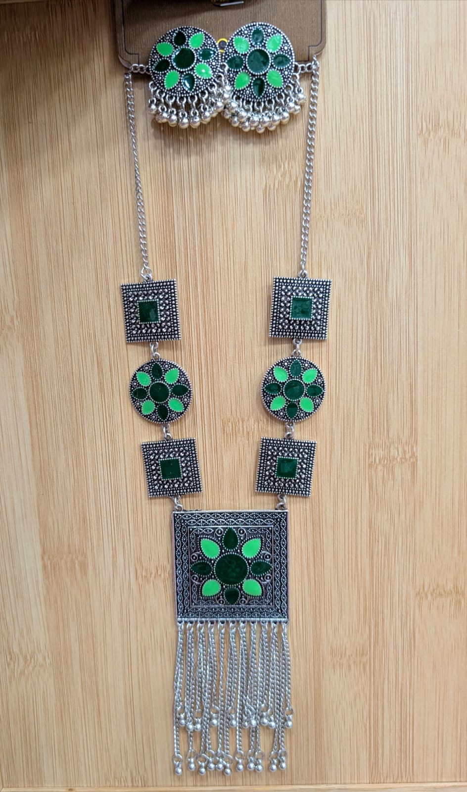 Vintage Afghan Charm: Handcrafted Oxidized Silver Collection (Sea Green)