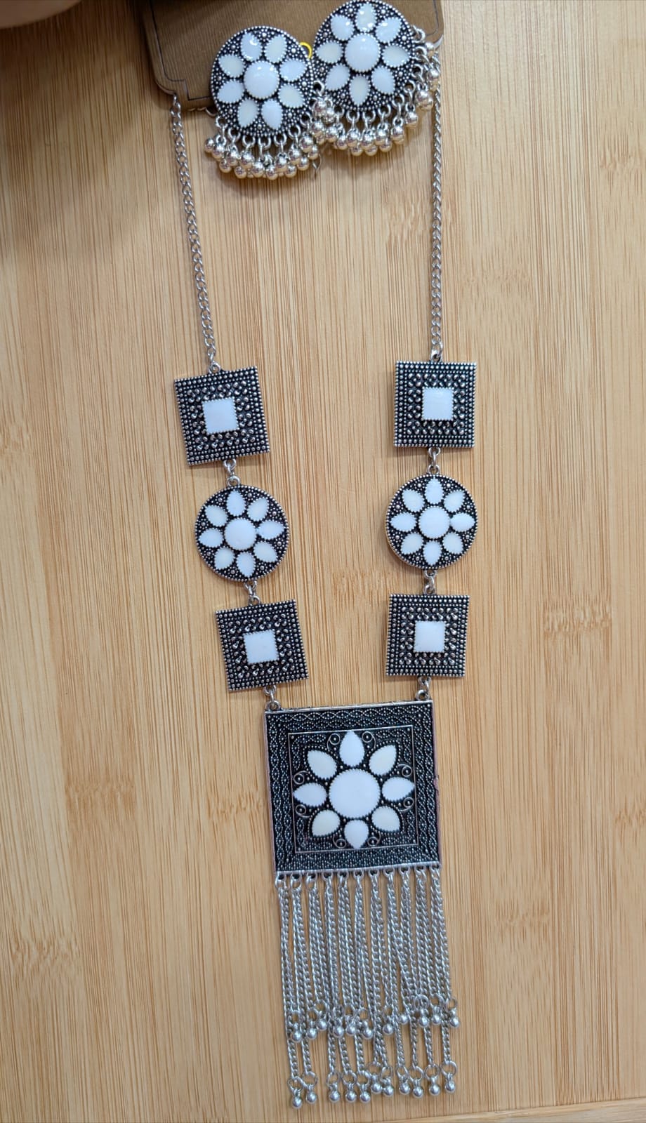 Vintage Afghan Charm: Handcrafted Oxidized Silver Collection (White)